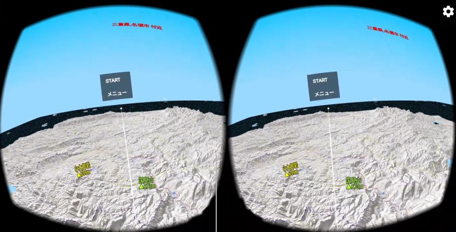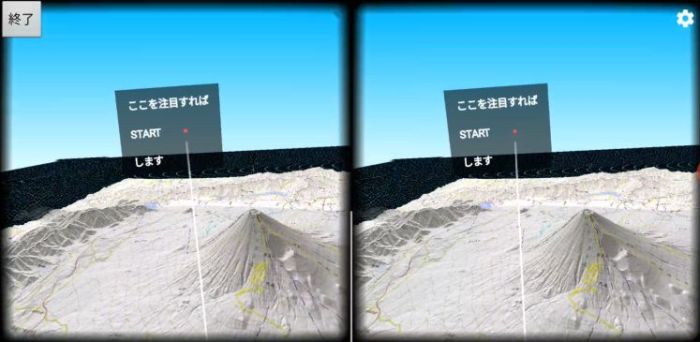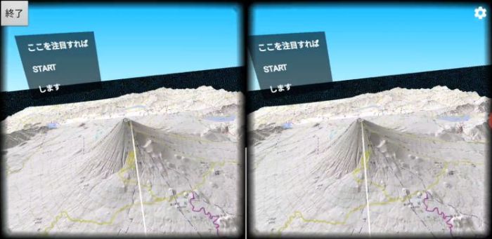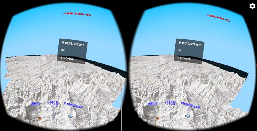 3D地形の表示中に,右下のVRボタンを押すと,VR機能が開始します.