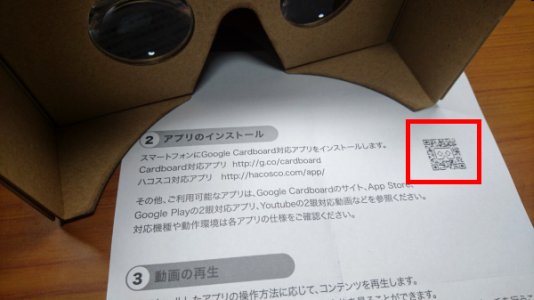 説明の順序が逆になりますが, 事前にCardboard公式アプリをダウンロード,起動して,使用するCardboardゴーグルの光学設定を済ませておいてください. Cardboardゴーグルに付属のQRコードを,Cardboard公式アプリで読み込んでください.