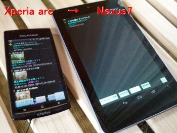 ※Android 2.0以上が必要です ※バージョン16.18からは,地図ロイドのGeoJSONデータもBluetoothでコピーできるようになりました. 説明ページ→GeoJSON図形ファイルを読み込む(Bluetooth) インターネットもケーブルも無くても,無線を使って他のスマホやタブレットと通信できるというものです. Nexus7などでWifiしか使えないタブレットだと,そのままでは外出先でスマホとのデータの出し入れができなかったのですが,この機能を使うとできるようになります. 例えば,電池に余裕のあるNexus7で山旅ロガーで旅の移動ログを取ったあとで,その結果をスマホの山旅ロガーにコピーしてスマホで見るということが可能になります. 山旅ロガーを使わなかった場合でも,地図ロイドに保存すれば,タブレットの地図ロイドからスマホの地図ロイドにコピーしてスマホで見ることができます. 使い方の説明ここでは,スマホ(Xperia arc)から,タブレット(Nexus 7)にデータをコピーする例で説明します.