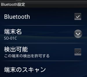 この状態で,送信する側(Xperia)の方に戻ります. 3. 送信先の端末の指定,ペアリング~送信する側(Xperia)ですが,先ほど途中で放置していた「OK」のボタンを押して下さい.すると近くにある端末を検索して,表示します.