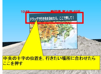 行きたい場所に合わせたら,上部にある「~ここを押して!」にポインターを合わせて,タッチパッドを押してください. すると,その場所に移動します. ■ 地形の種類を選ぶ地形の種類を選べます.