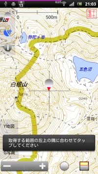 地図ロイドのキャッシュ機能地図ロイドは3G,Wifiの通信ができる場所では普通に使えますが, 地形図とYahoo地図については,事前に通信ができる場所で地図データをインターネットから本体またはSDカードに読み込んでおくことで,山域などの電波圏外でも使えます.(読み込んだデータをキャッシュといいます)大まかな使い方としては,こうなります.