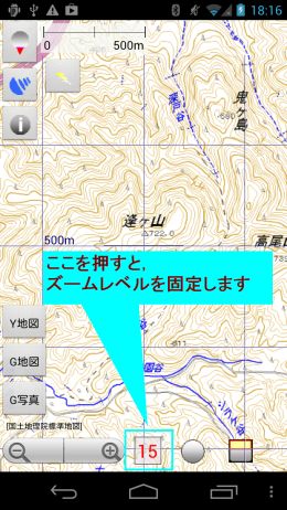 - 地図を表示するときは,ズームレベル固定機能を使って15に固定する