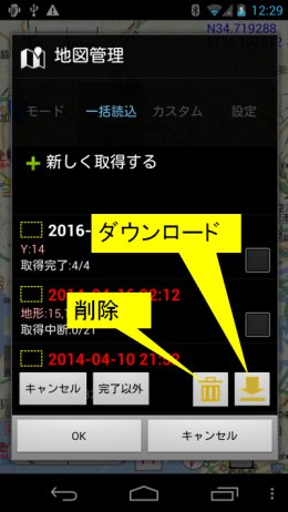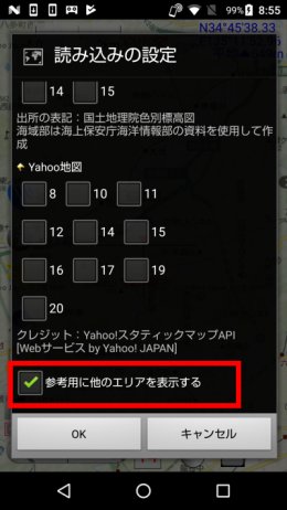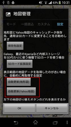 地図データを事前に読み込んでおくことで,地図ロイドは圏外,オフラインといった通信がない状態でも地形図とYahoo地図を表示することができます.このためのキャッシュ機能についての説明