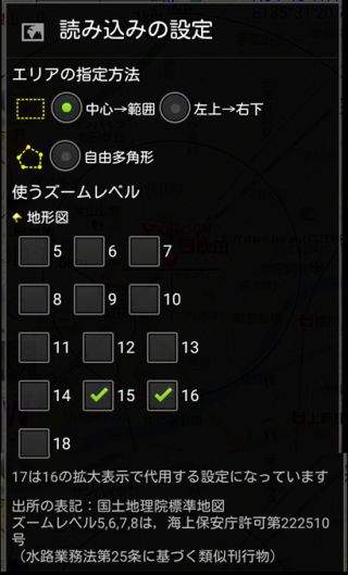 - 一括読み込みでは,地形図のズームレベル15だけを取得する