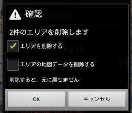 | 削除 | エリアを削除します.そのエリアのキャッシュデータは残すかどうかは選べます |