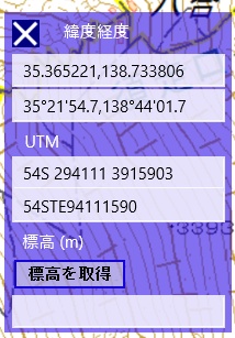 「標高を取得」ボタンを押すと,国土地理院の標高APIを使って標高を取得します.