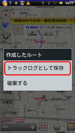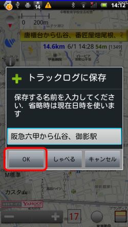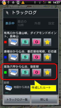 保存する名前を入力してOKを押すと,できあがりです.トラックログ一覧の先頭のグループに保存されます.