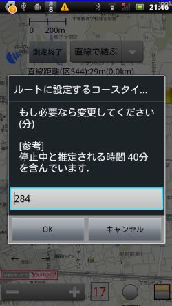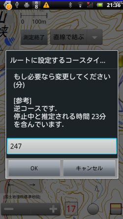 タップすると,コースタイムの確認が出ます.元のルートデータのコースタイムをそのまま設定する場合は, そのままOKを押してください.