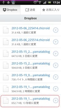 先ほどアップロードしたファイルをタップします.一番下です. するとダウンロードが始まります.
