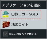 ダウンロードが終わると,起動するアプリを選ぶメニューが出ますので「山旅ロガーGOLD」または「山旅ロガー」を選んでください.