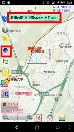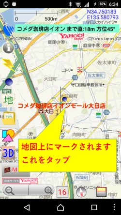 地図系アプリ間での座標の転送には,かなり便利です. すると,地図上にマークされます. これをタップすると,