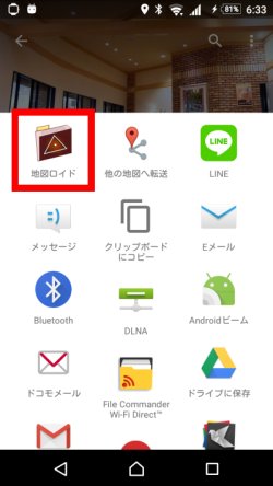 共有先のアプリの一覧から「地図ロイド」を選んでください.
