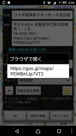 「説明にあるURLを開く」をタップすると,GoogleマップのURLを開けますし,