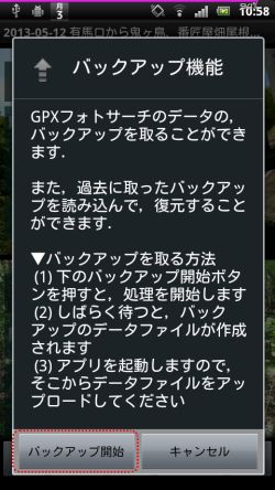 GPXフォトサーチのデータバックアップ機能について説明します.