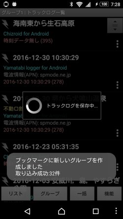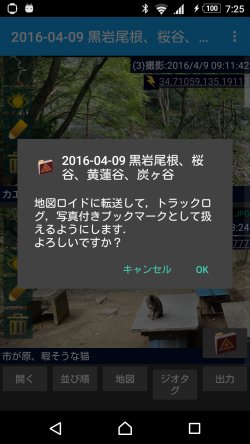 地図ロイドのトラックログに,アルバムの元となっている軌跡が登録されて, ブックマークには,新しいグループとして位置と写真が登録されます.
