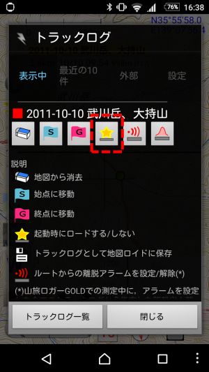 すると,地図ロイドが起動したときにこのトラックログを自動的に読み込むように設定されます.