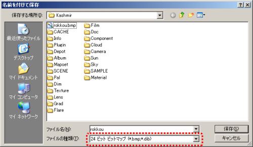 書き込みが終わったら「名前をつけて保存」.必ずファイルの種類をビットマップにして下さい.