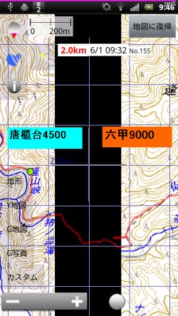 また,チェックをオフにすると,そのマップを削除せずに無効にすることができます. このことは,マップの自動切り替えで使いたいマップを絞り込むために使えます. ※バージョン11.3からは,そのような用途には後で説明するグループ化も使えます. 2. マップの切り替えこのように「唐櫃台4500」「六甲9000」というマップを取り込んでいるとします.