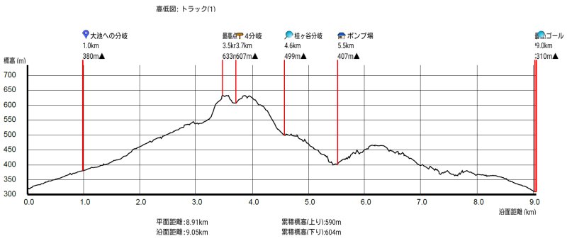 ・バージョン2.0からは,トラックログの高低図を出力できるようになりました.