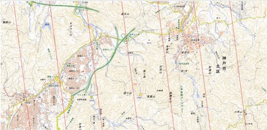 標準では薄い茶色ですが,見にくい場合は濃くすることができます. ■ 地図の拡大拡大しない/2倍※印刷した地図の縮尺は,拡大しなければ1/25000,2倍に拡大すると1/12500になります. ■ 地図の種類国土地理院標準地図 / 国土地理院淡色地図※地図の拡大設定が「拡大しない」の場合はレベル16,「2倍」の場合はレベル17のタイルデータを利用させていただいています. ダウンロードした地図タイルは,1日間だけ端末に保存しているため, 続けて同じエリアを処理するときはダウンロードを行わず高速にできます. ■ 磁北線表示しない/500m間隔/1km間隔表示しない