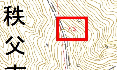 中央に偏角(度)が出ます.これは西偏7.3度を表しています.