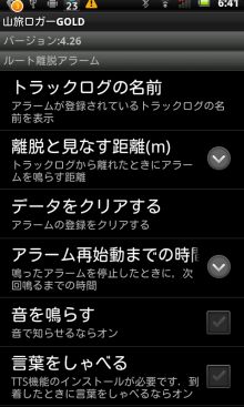 山旅ロガーGOLDの4.26以上では,事前に登録しておいたルートから外れたときにアラームを鳴らすことができます.