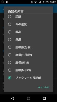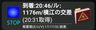 の上にポイントが乗っている場合は,到着予定時刻「到着:」,ルート沿いの距離「ル:」を表示できます.