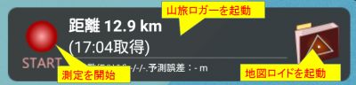 アイコンがカラーの場合は,測定情報部に表示している区間を地図上にトラックログとして表示した状態で起動します