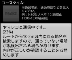 Exifを維持して縮小しますので,あとでヤマレコのサイトから地図上への自動配置を行うことは可能です. (D) コースタイムの設定※現在のヤマレコでは,GPSログから自動的にコースタイムを設定するようになっています.この機能は使わずコースタイムは空欄のままにしておいて,ヤマレコ側に任せた方が良いと思います.