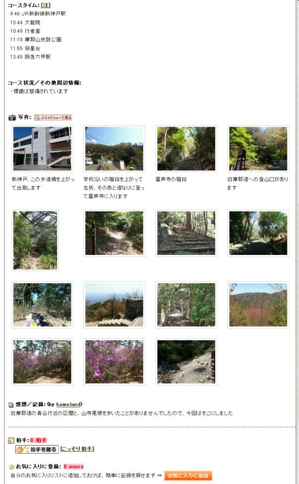 ただし先ほど書いたように,写真の地図上への配置と,代表写真設定はできないため,その状態で公開しても構わないという場合のみ使って下さい. 余談自分の使い方ですが,帰りの電車の中で写真の整理とコメント入力,感想の入力まで済ませてしまいます.いつも山旅ロガーで行動のログを取って,スマホのカメラで写真を撮っていますので,GPXフォトサーチでその日の写真を整理して,不要なものを削除し,各写真にコメントを入れます. ヤマレコ用の感想の入力もこの機能で済ませます. ここまで,電車の中でスマホでできます. 帰宅して家のインターネット環境(WiFi)にスマホをつないだら,ここで説明したようにヤマレコに下書きをアップロードして,あとはパソコンで微調整,一般公開するという具合です. |
