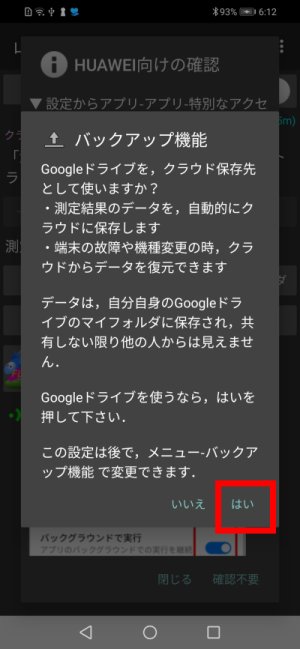 ここで「はい」と答えると,Googleドライブへの自動バックアップを開始します.