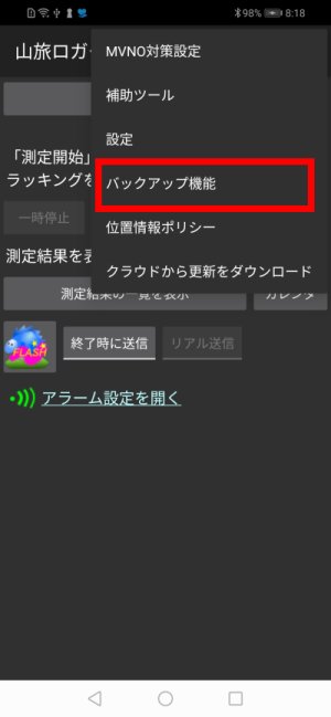 メニュー-バックアップ機能 で,状況を確認できます.