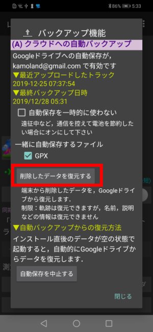 山旅ロガーGOLDのv9.1,無料版のv10.0からは,クラウド自動バックアップに対応しました.