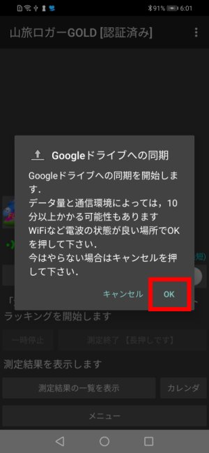 その後,今のデータをGoogleドライブにアップロードしますので,OKを押して下さい.