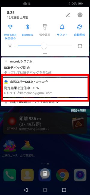 アップロード中は,閉じるボタンを押せば,閉じて他のアプリも使えます.状況は,通知に出ます.