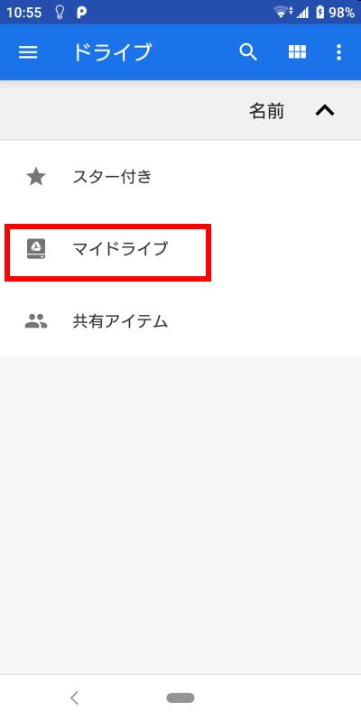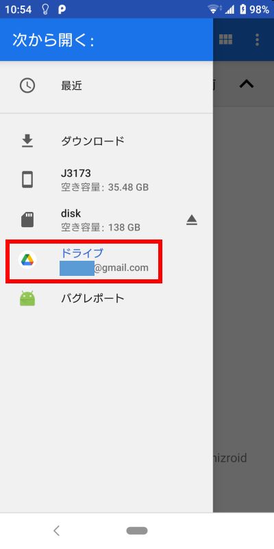 今回はGoogleドライブからですので,左のメニューから「ドライブ」を選んで行います.
