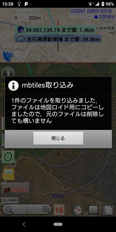 地図ロイドのv17.9からは,mbtilesという地図データのファイルを取り込んで,オフラインで表示できるようになりました.