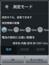 - life360というアプリをインストールすると測定間隔が延びてしまったが,Androidの「位置情報」の設定を「高精度」から「GPSのみ」に変更すれば解消した