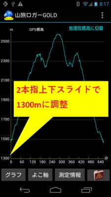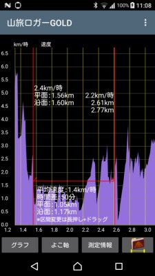 右下のグラフは,標高です.山旅ロガーがGPSで取得して記録したものです.