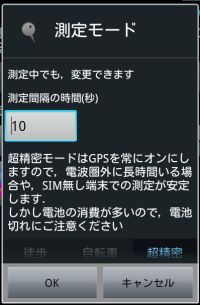 →バージョン7.4から,全ての測定モードで超精密モードと同等の安定性になりました(測定モードでデフォルトの「GPSを常にオン」にしている場合).ので,気にする必要はなくなりました.