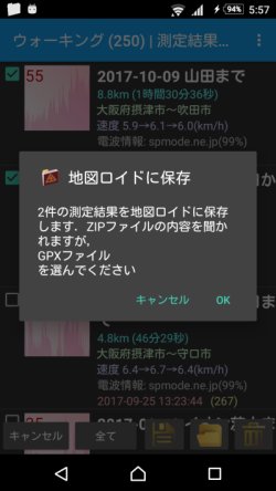 ★ 山旅ロガーの設定-その他で,「GPSデータを厳選して記録する」をオフにする.