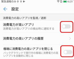 「消費電力が高いアプリ」「極端に消費電力の高いアプリを閉じる」をオフにしてください.